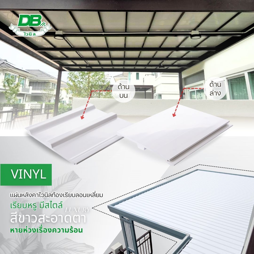 แผ่นกันสาด / หลังคาไวนิลท้องเรียบเคลือบเงายี่ห้อDBข้อดีของแผ่นหลังคาไวนิลDB