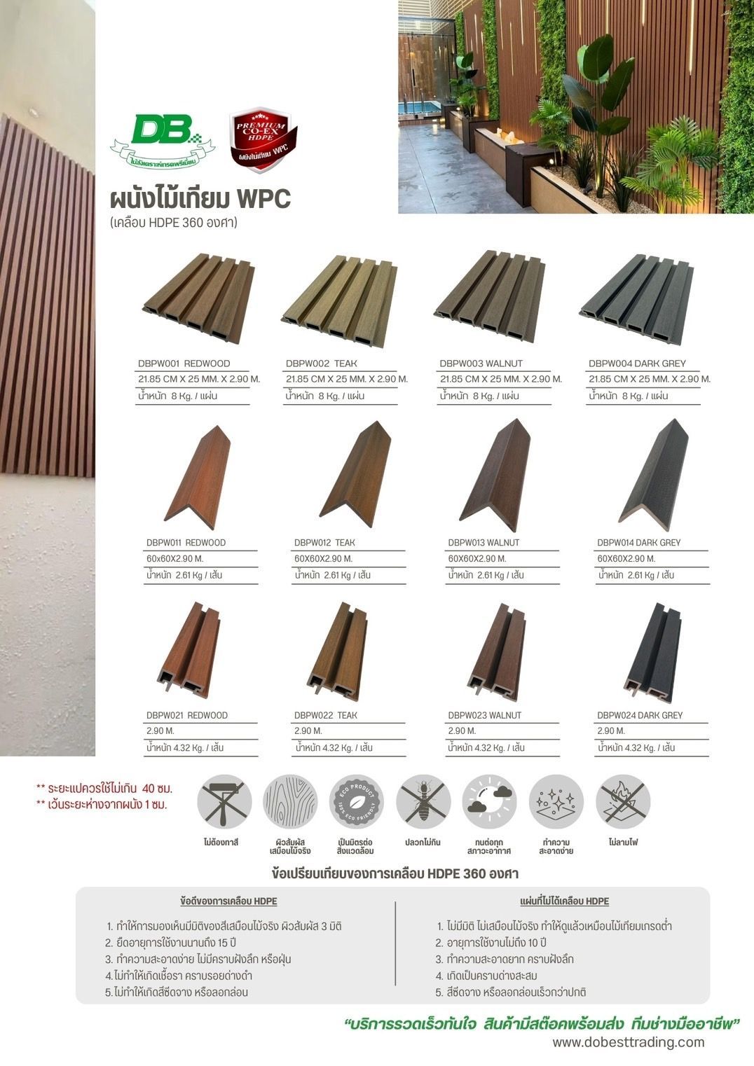 ไม้ผนังสังเคราะห์เกรดพรีเมี่ยม ไม้เทียม หรือWPC เป็นการผสมพลาสติกกับเนื้อไม้ถือเป็นเทคโนโลยีที่ก้าวข้ามไปอีกขั้นสำหรับวัสดุที่นำมาตกแต่งบ้านทั้ง