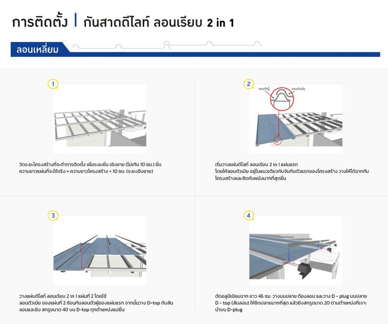 แผ่นหล้งคาดีไลท์ - กันสาดดีไลท์ ลอนเรียบ 2 in 1